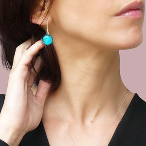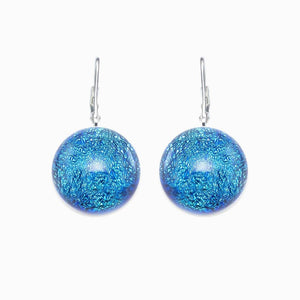Les boucles d'oreilles Eclipse Microcosmoses Reflet sont fabriquées à la main et travaillées à chaud à Corfou. Les couleurs scintillent de façon fantastique, sont vives et changent en fonction de la façon dont la lumière tombe dessus.